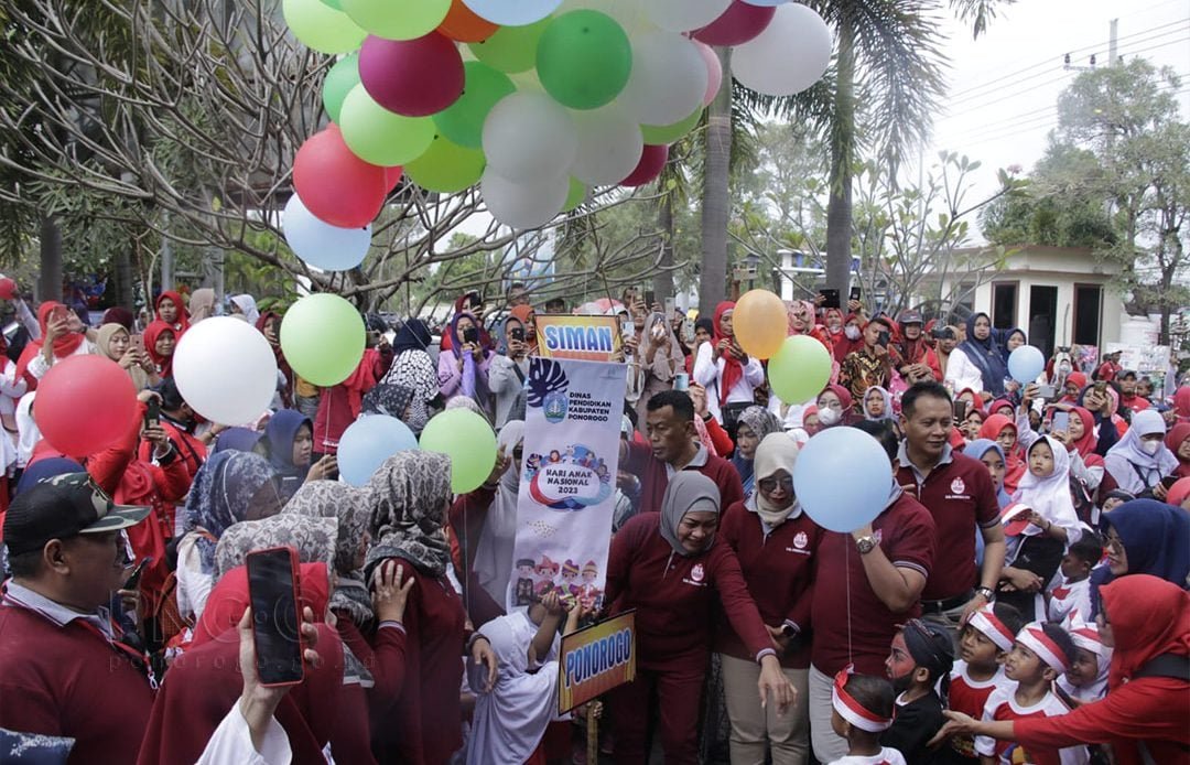 Aswaja News – Berbagai macam jenis lomba kreativitas menandai peringatan Hari Anak Nasional (HAN) 2023 di Ponorogo. Bupati Sugiri Sancoko dan Susilowati, istrinya, membuka lomba yang berlangsung di kompleks Gedung Terpadu itu, Rabu (7/6/2023), dengan peserta ratusan anak-anak dari kelompok bermain (KB) serta taman kanak-kanak (TK).