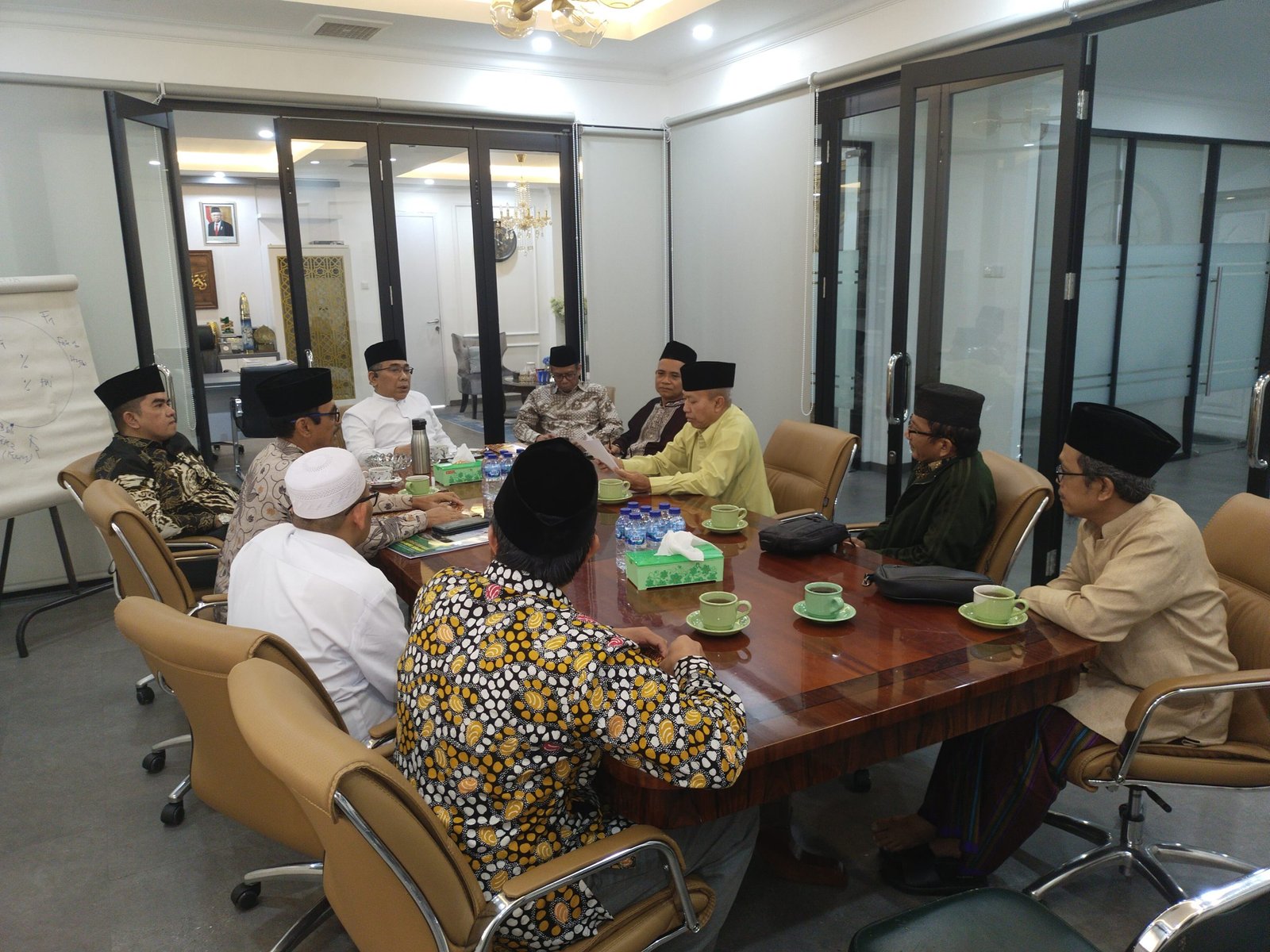 Rombongan pengurus PCNU Ponorogo tersebut diterima langsung oleh Ketua Umum PBNU Dr. KH. Yahya Cholil Staquf di ruang kerjanya di lantai 3 kantor PBNU Jl. Kramat Raya Jakarta Pusat. Selain Ketua Umum hadir juga beberapa jajaran pengurus harian dan pimpinan PBNU, di antaranya Sekretaris Umum Drs. KH Syaifullah Yusuf, Prof. Dr. H. Nizar Ali, MA, Gus Falah, KH. Amin Said Husni dan jajaran pengurus lainnya.