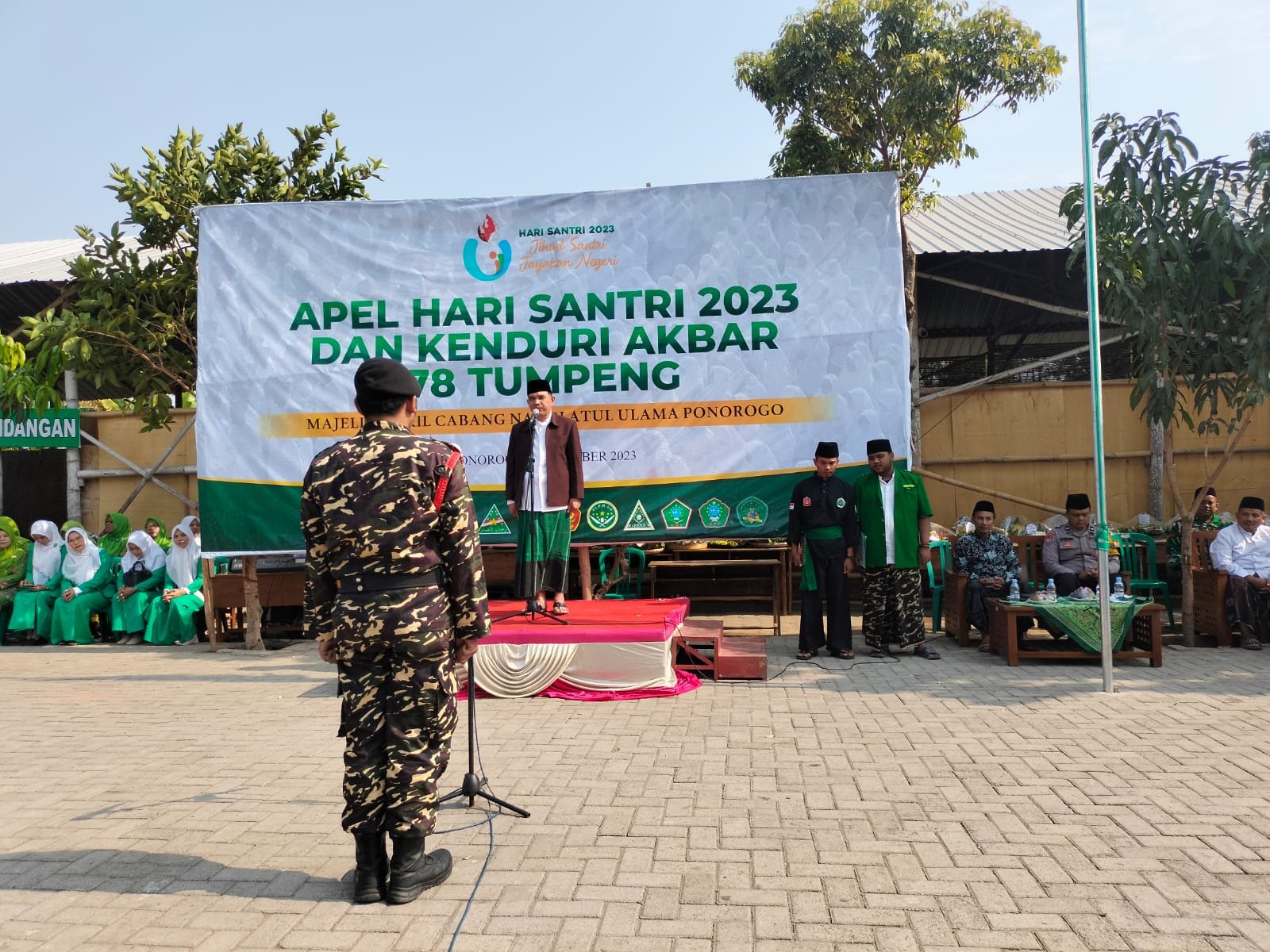 Aswaja News – Puncak Hari Santri Nasional tahun 2023 MWCNU Ponorogo diperingati dengan apel yang diikuti seluruh Banom (Badan Otonom) yang ada. Mulai dari Muslimat NU, Fatayat NU, GP Ansor, Banser, IPNU , IPPNU. Momen tahunan ini juga diwarnai dengan kenduri besar tujuh puluh delapan (78) tumpeng.
