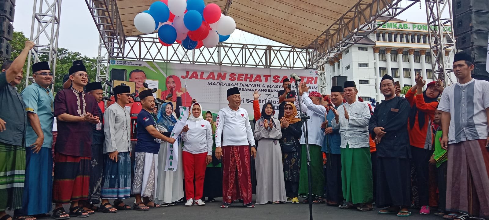 Hadir dalam kegiatan jalan sehat santri Bupati Ponorogo Sugiri Sancoko, SE., MM, Wakil Bupati Ponorogo Hj, Lisdyarita, SH, Sekretaris Daerah Kabupaten Ponorogo Dr. Agus Pramono, seluruh Kepala Dinas di Kabupaten Ponorogo, PCNU, PDM, MUI, GP Ansor, IPNU-IPPNU, Guru Madrasah Diniyah dan peserta dari santri Madrasah Diniyah se-Kabupaten Ponorogo. (IIM)