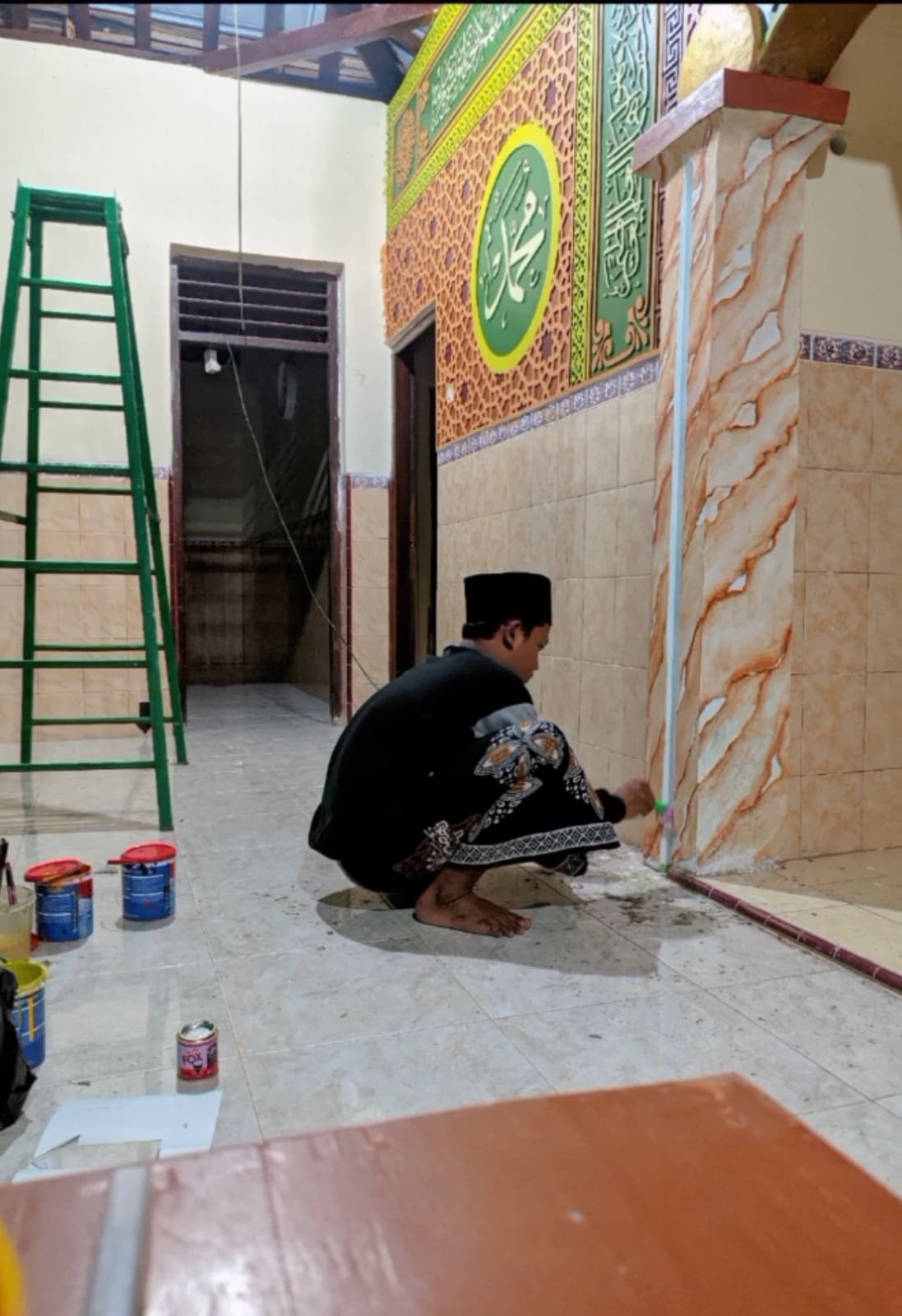 suka corat coret ditembok rumahnya sekarang dia lebih suka mencurahkan bakatnya di tembok-tembok masjid, sangat indah bukan