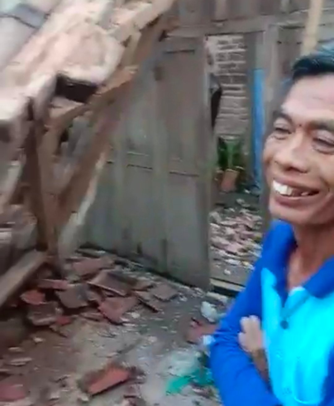 Kronologi kejadian terjadi hujan lebat dan angin pada Sabtu malam (06/01/2023) di wilayah Desa Pandak. Karena konstruksi atap rumah yang ditempati sudah lapuk tidak mampu menahan beban air dan tekanan angin yang kuat sehingga atap rumah roboh semua.
