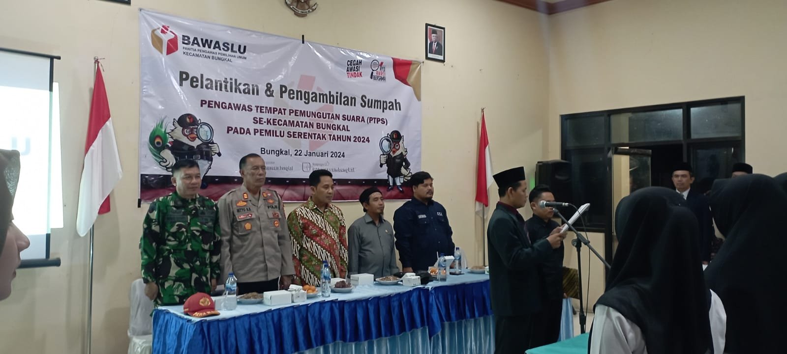 Ketua Panwascam Bungkal, Suwadi mengatakan sebelumnya pihaknya sudah memulai tahapan rekrutmen dengan mengumumkan dan mesosialisasikan pendaftaran sejak tanggal 19 Desember 2023 melalui Pemerintah Desa maupun tokoh-tokoh masyarakat dan puncaknya adalah di hari ini, Senin (malam), 22 Januari 2024 penetapan panwas TPS terpilih yang ditandai dengan pelantikan dan pengambilan sumpah/janji.