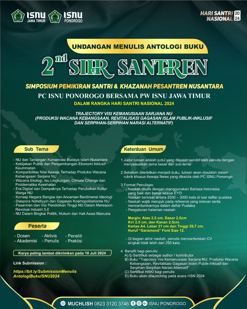 Bagi kalian yang ingin berpartisipasi dalam SIIR SANTREN KE 2 ini, berikut informasi detail mengenai Undangan Menulis Antologi Buku: