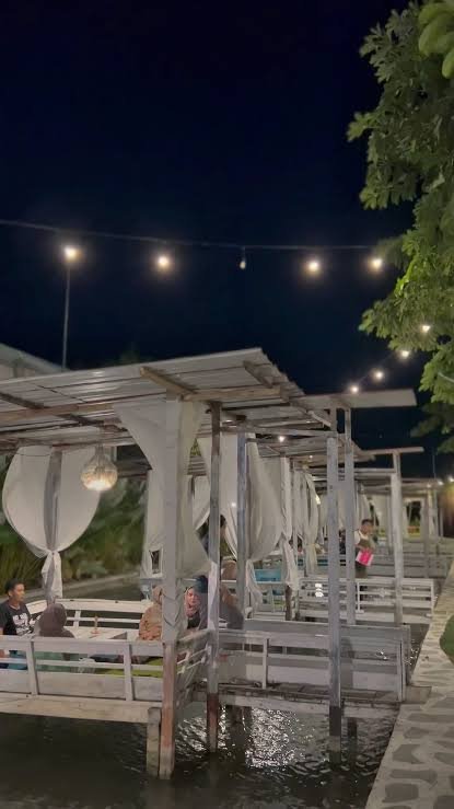 Lampu-lampu dan ukiran khas Jawa yang ada di Sekayu River akan terlihat lebih estetik ketika malam hari.*** (Alfina)