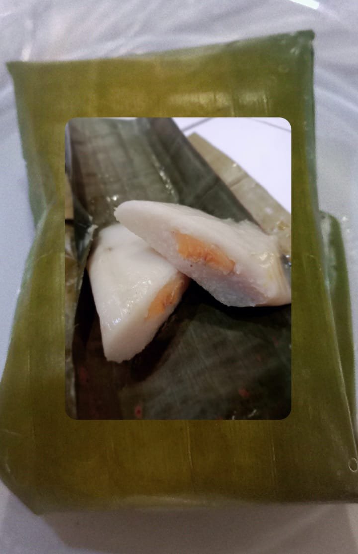 • Masukkan 1 sdm atau secukupnya ke daun pisang lalu lipat kedua ujungnya