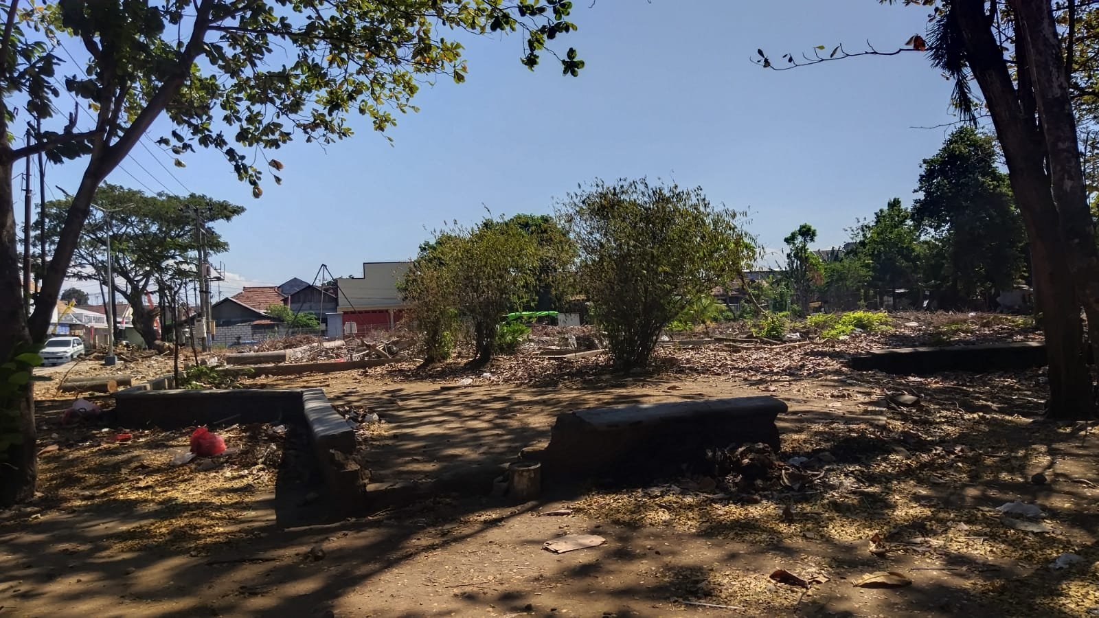 Dalam pantauan di lapangan, lokasi tempat panggung ekraf direncanakan sudah dibersihkan dari pohon-pohon yang sebelumnya ditebang.