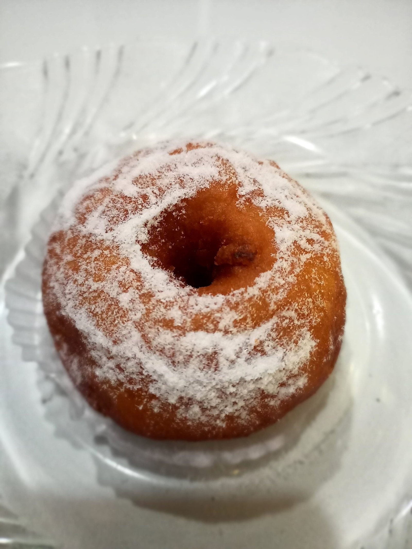 Di antara sekian banyak jenis donat, ada satu donat yang masih eksis hingga saat ini meskipun tidak memiliki perubahan yang neko-neko yaitu donat salju atau banyak juga yang menyebutnya donat kampung.