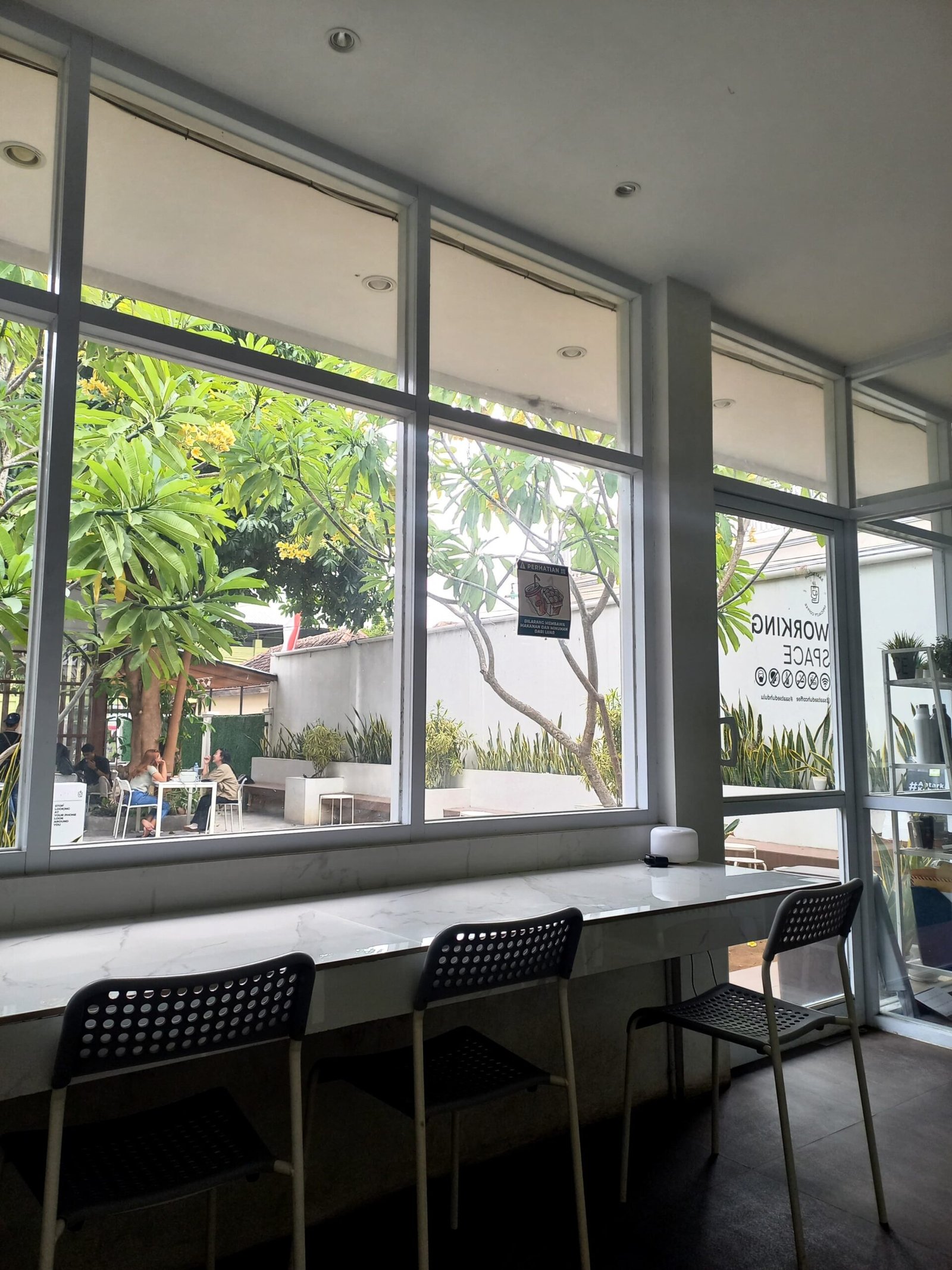 Area working space juga dilengkapi dengan AC dan banyak stop kontak jadi tidak akan khawatir kepanasan maupun kehabisan stop kontak.