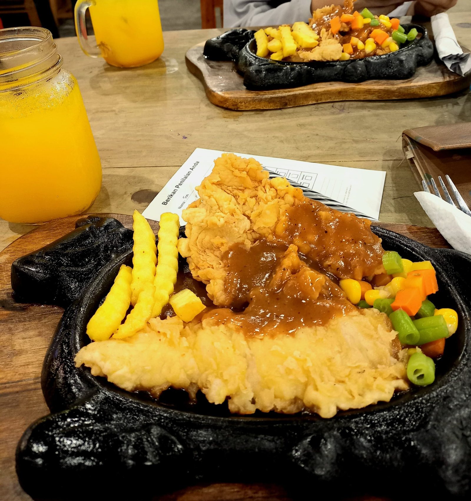 Banyak sekali menu yang mereka hadirkan tentunya dengan signature mereka yaitu steak dan ricebowl. Terdapat beberapa macam steak seperti beef steak, chicken original, chicken crispy, dan fish crispy, kalian bisa memilih sesuai selera kalian.