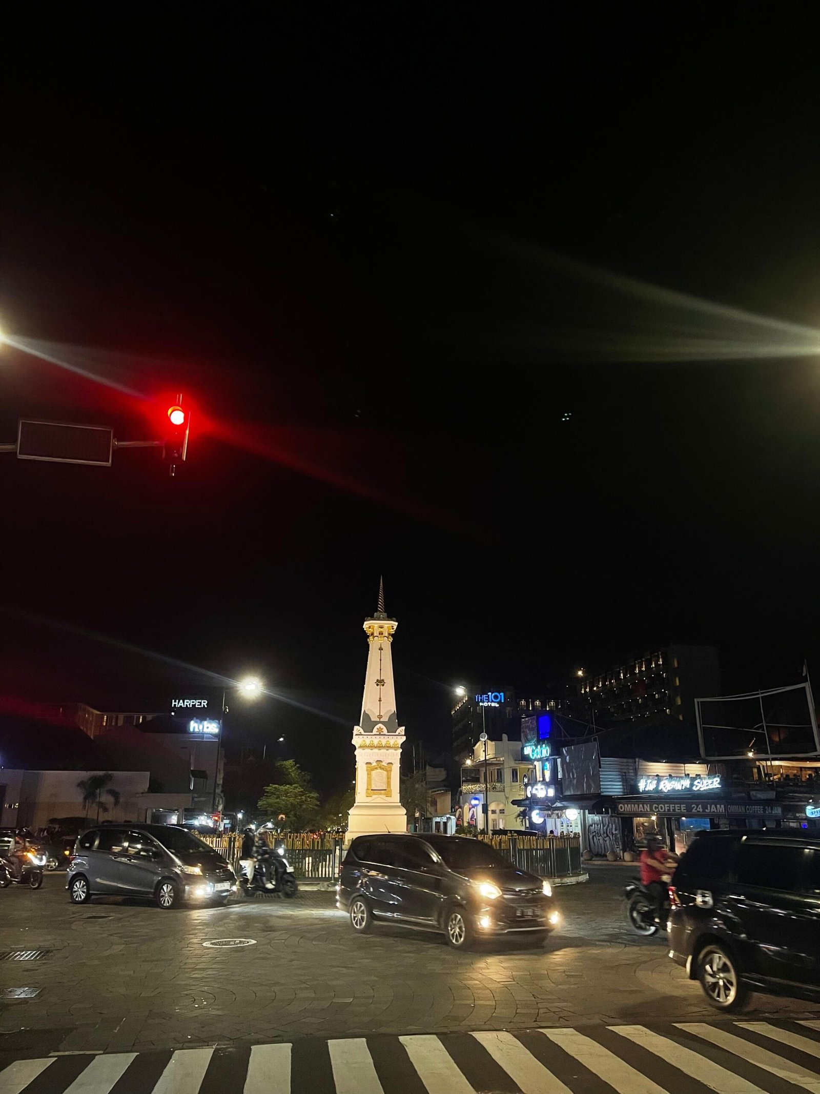Tidak hanya saat pagi atau siang saja, Tugu Jogja juga sangat menarik saat kalian kunjungi pada malam hari. Keindahan Tugu Jogja pada malam hari dibantu juga dengan cahaya lampu jalan serta lalu lanang kendaraan yang lewat.