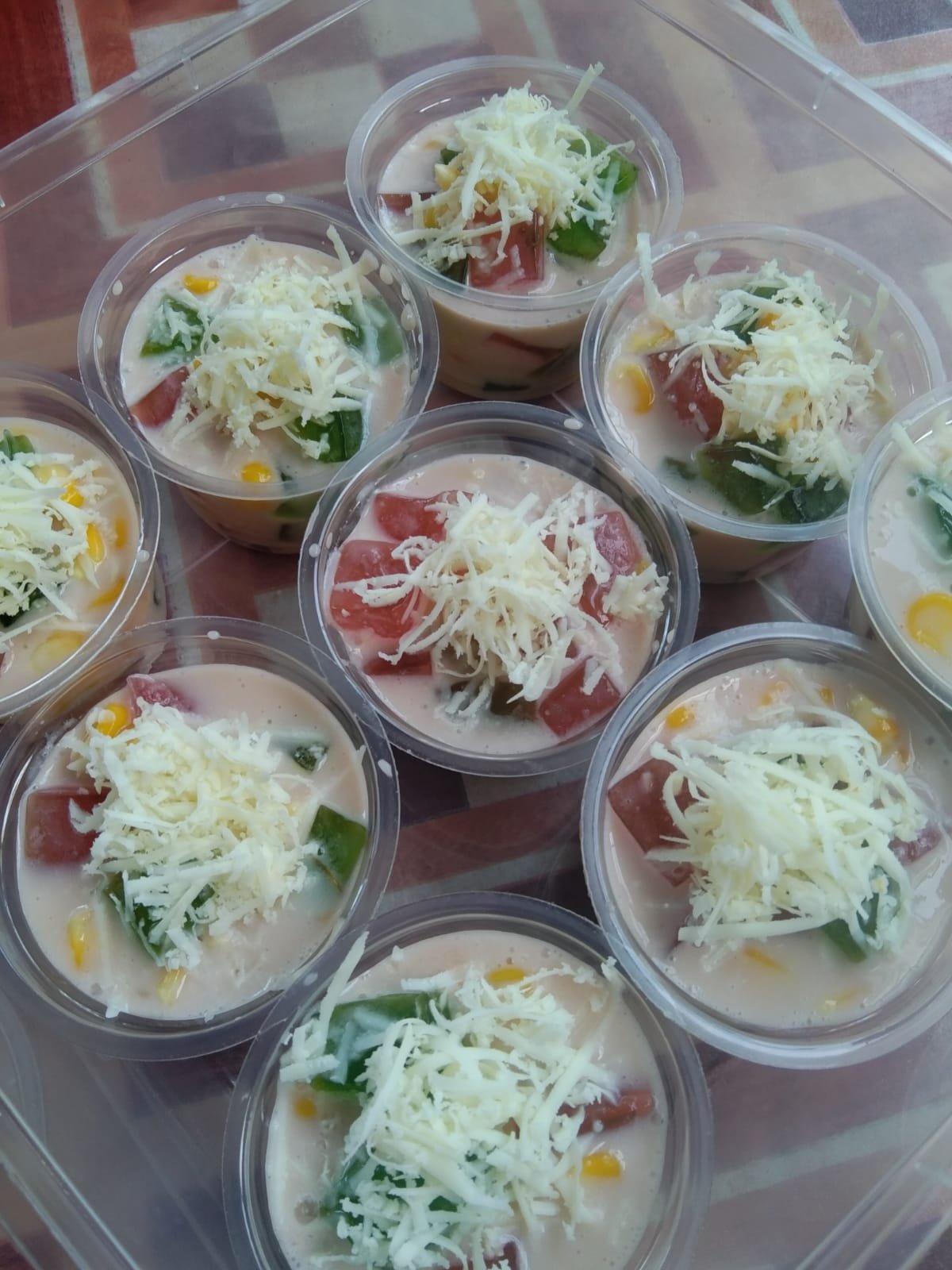 • Potong jelly yang sudah jadi dengan bentuk dadu dan juga siapkan jagung rebus yang bijinya sudah dipisahkan.