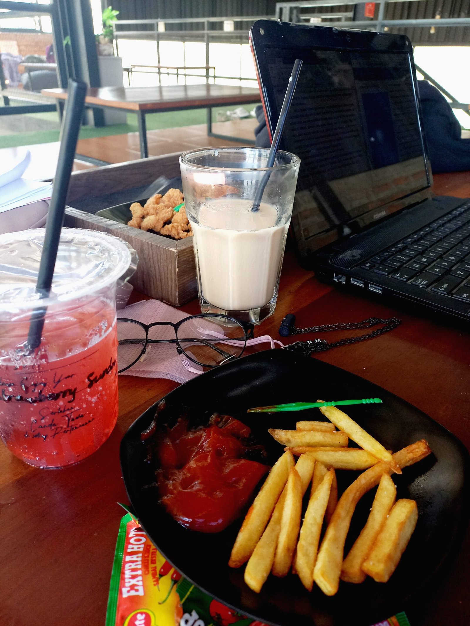 Jangan khawatir jika kalian nugas di sini tidak ditemani makanan atau minuman enak. Makanan dan minuman yang mereka tawarkan sangat beragam mulai dari makanan berat seperti nasi ayam kriuk, nasi ayam gokil, nasi crazy rich, mie anak kosan, mie sultan dan lainnya. Snack yang mereka miliki juga banyak mulai dari nugget, ekado, french fries hingga chicken skin.