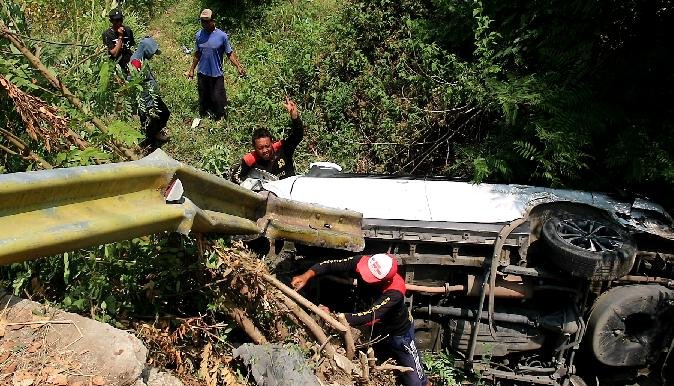 Karena kerasnya tumburan tersebut, mobil Daihatsu Espass terpental hingga berbalik arah dan beberapa penumpangnya mengalami luka-luka.