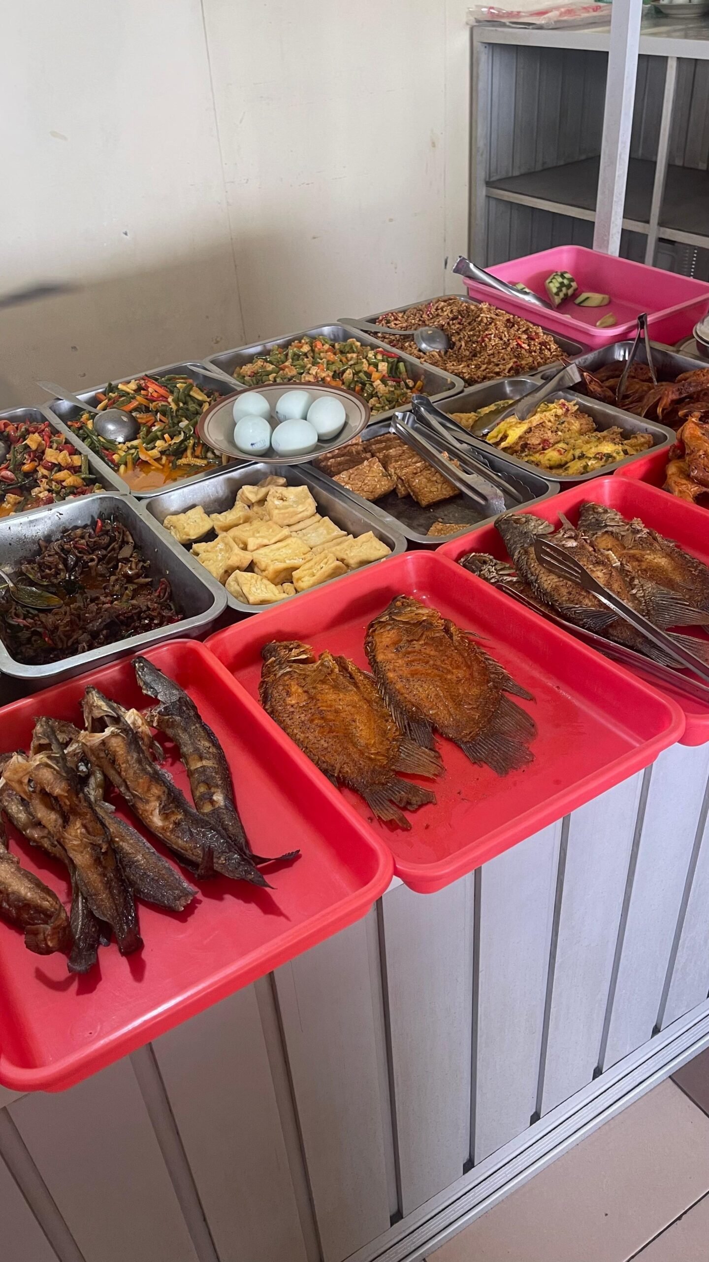 Lauk pauk di sini juga sangat beragam mulai dari ayam goreng/ bakar, gurame goreng/ bakar, nila bakar, telur dadar, tempe, tahu, usus, lele, telur asin dan lain-lain. Pilihan sayuran di sini juga banyak mulai dari sayur bening, bihun goreng, soun goreng, tumis buncis, tumis tahu kacang panjang, orek tempe, sayur lodeh, sayur kuah kuning dengan bermacam isian dan masih banyak yang lainnya.
