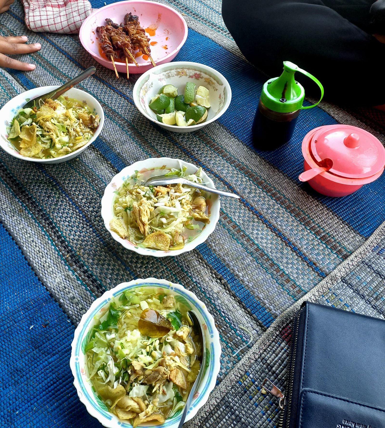 Terdapat juga beberapa lauk pendamping yang bisa kalian ambil di meja masing-masing seperti sundukan ati ampela, sundukan usus, sundukan ayam, uritan, tempe goreng, perkedel kentang, dan kerupuk. Kalian juga bisa meracik bumbu-bumbu yang kalian inginkan seperti sambal, kecap atau segar dari jeruk nipis.