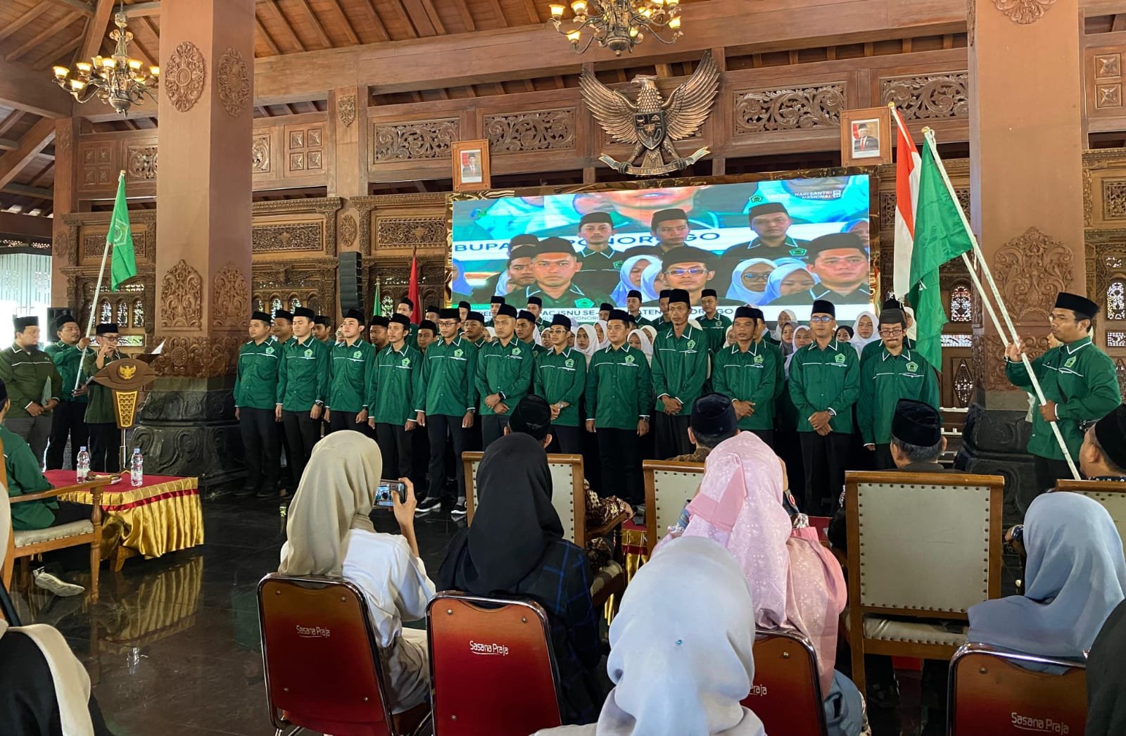 Sekretaris Pimpinan Wilayah ISNU Jawa Timur Muhammad Daud melantik ratusan intelektual NU menjadi pengurus anak cabang (PAC) di Pendopo Agung Kabupaten Ponorogo dalam rangkaian 2nd Siir Santren 2024.