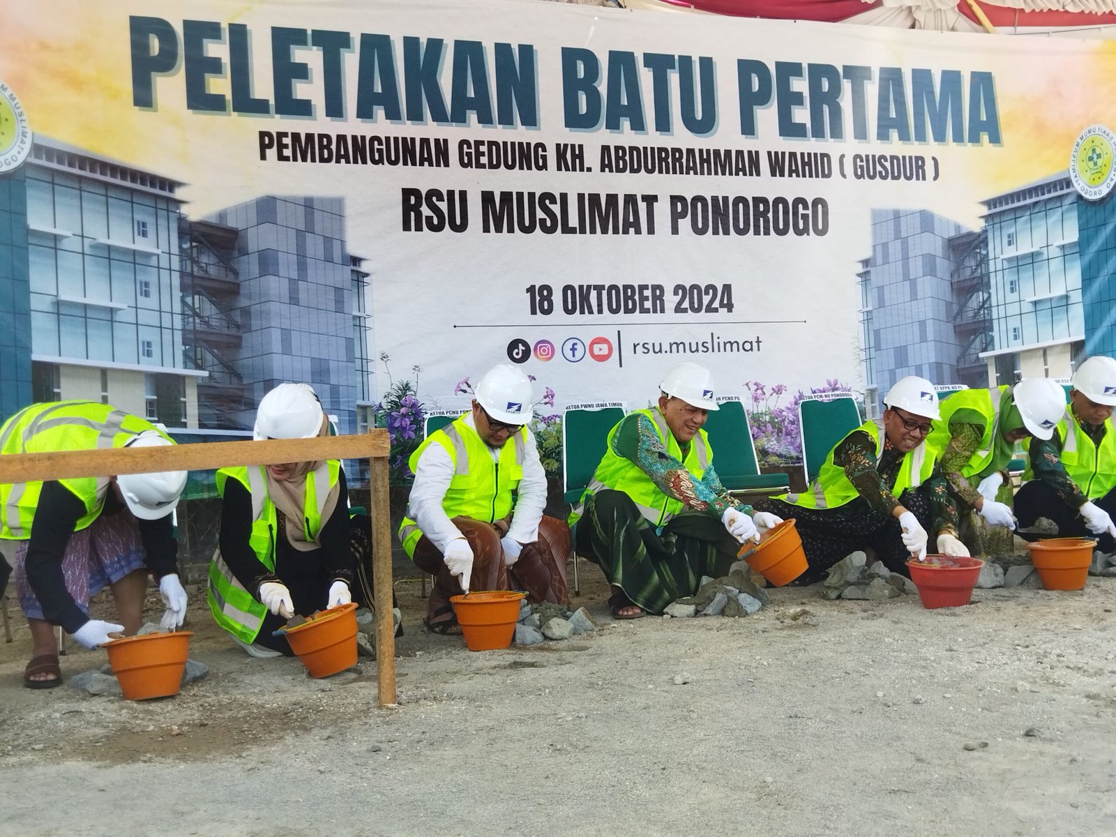 Aswajanews – KH. Abdul Hakim Mahfudz atau yang biasa dipanggil Gus Kikin Meletakkan batu pertama pembangunan gedung baru Rumah Sakit Umum (RSU) tipe C Muslimat Ponorogo, Jumat (18/10/2024).