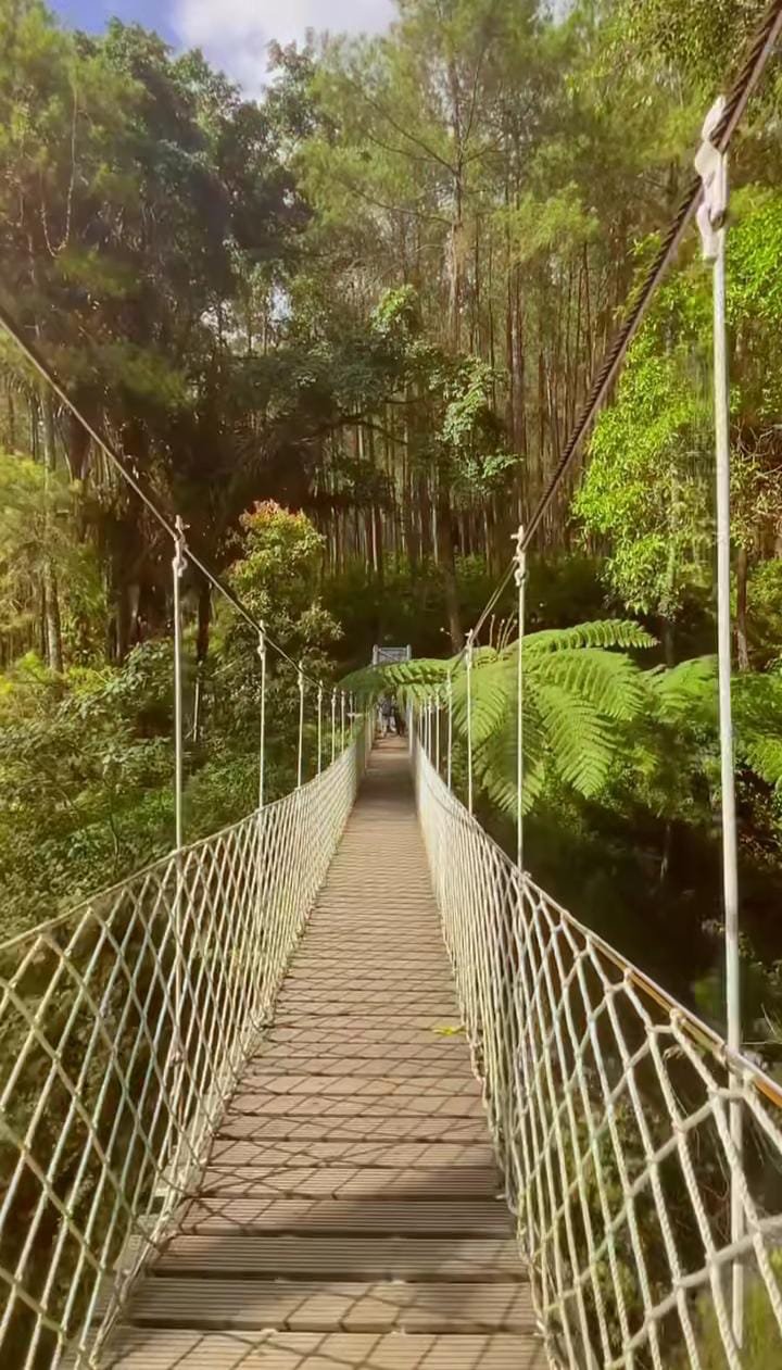Hutan pinus yang menjadi ciri khas dari tempat ini sangat cocok untuk relaksasi. Banyak spot foto menarik, seperti jembatan gantung yang ada di tengah hutan dan rumah dari kayu yang membuat pengunjung betah berlama-lama sambil berfoto.