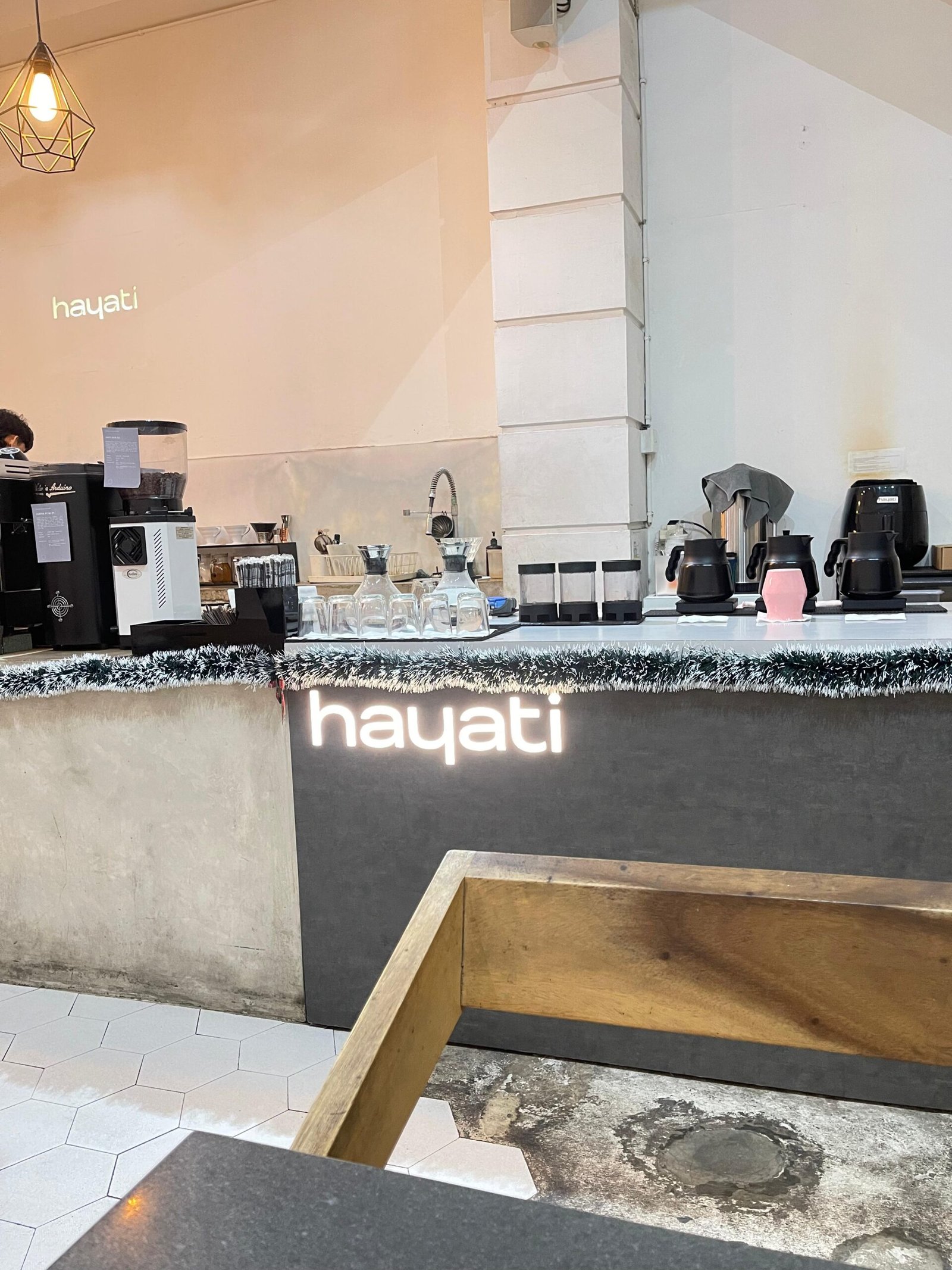 Hayati Coffe Roaster, sebuah tempat ngopi dan berkumpul bersama teman dan kerabat yang berada di Jl. Demangan Baru No.7, Demangan Baru, Caturtunggal, Kec. Depok, Kab. Sleman.