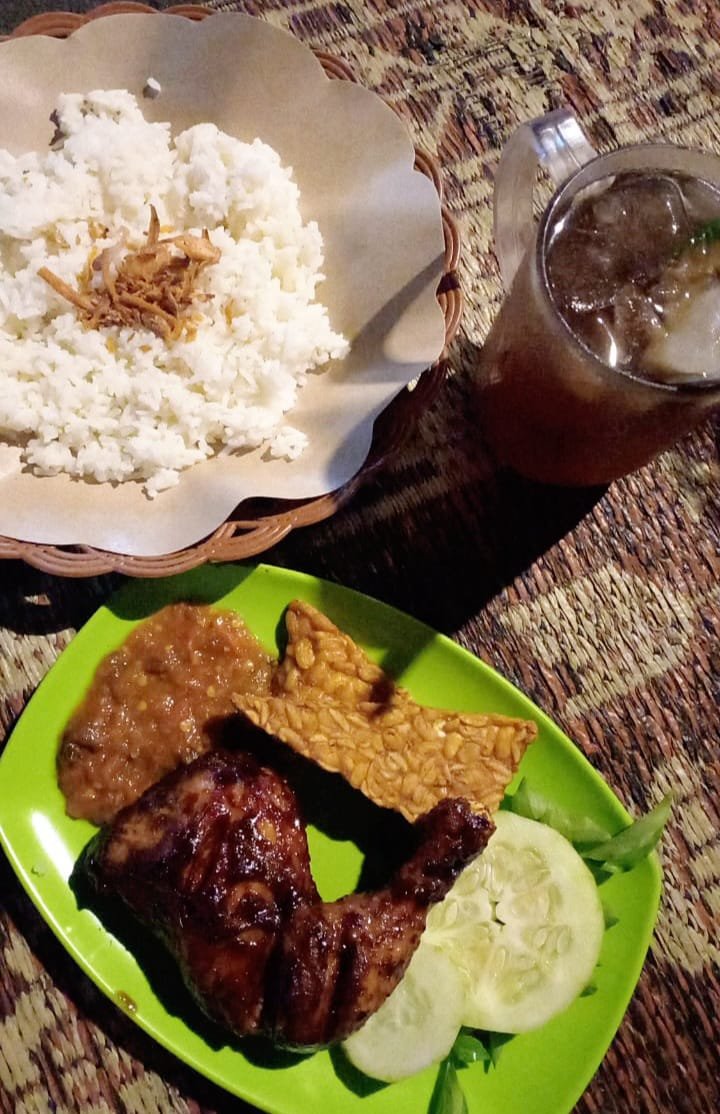 Kesederhanaan tempat makan dengan meja kayu panjang, bangku plastik, tikar lesehan dan aroma bakaran yang menguar di udara menciptakan atmosfer santai yang mengundang siapa saja untuk singgah.