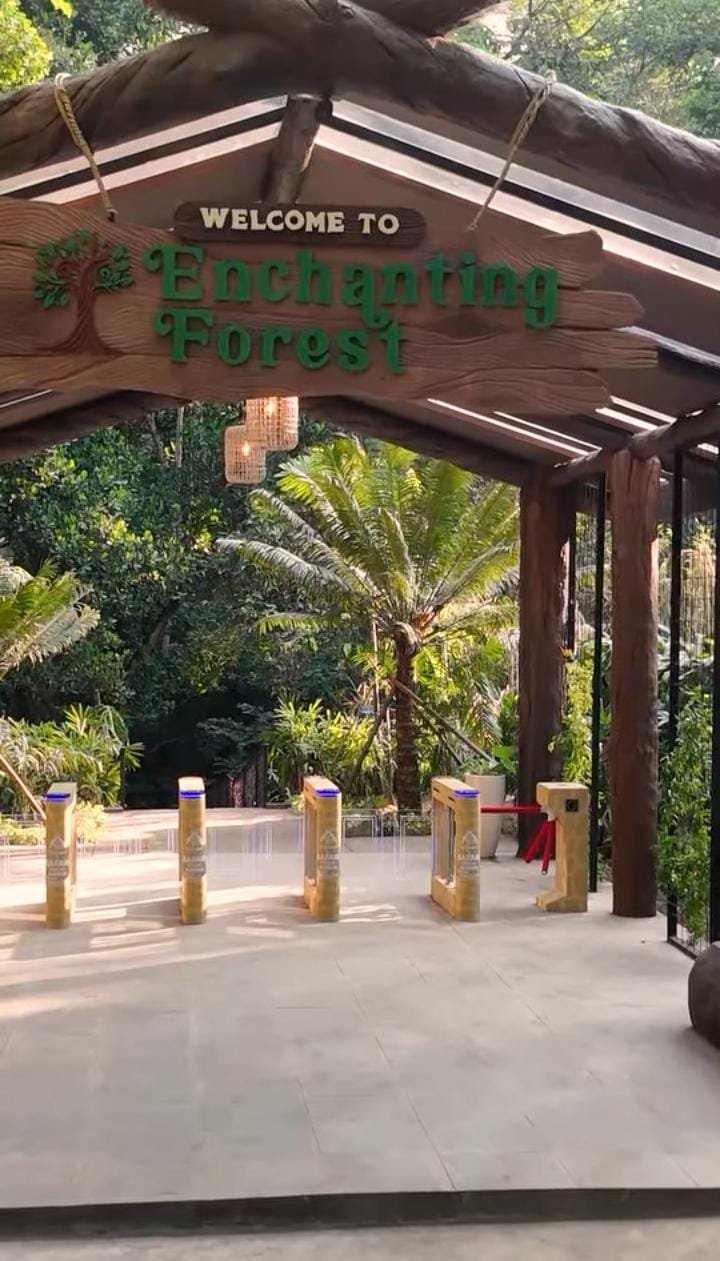 Begitu memasuki kawasan Enchanting Forest, pengunjung akan disambut dengan pemandangan hijau yang menyegarkan mata. Pohon-pohon tinggi menjulang dengan daun yang rimbun, menciptakan kanopi alami yang melindungi dari terik matahari.