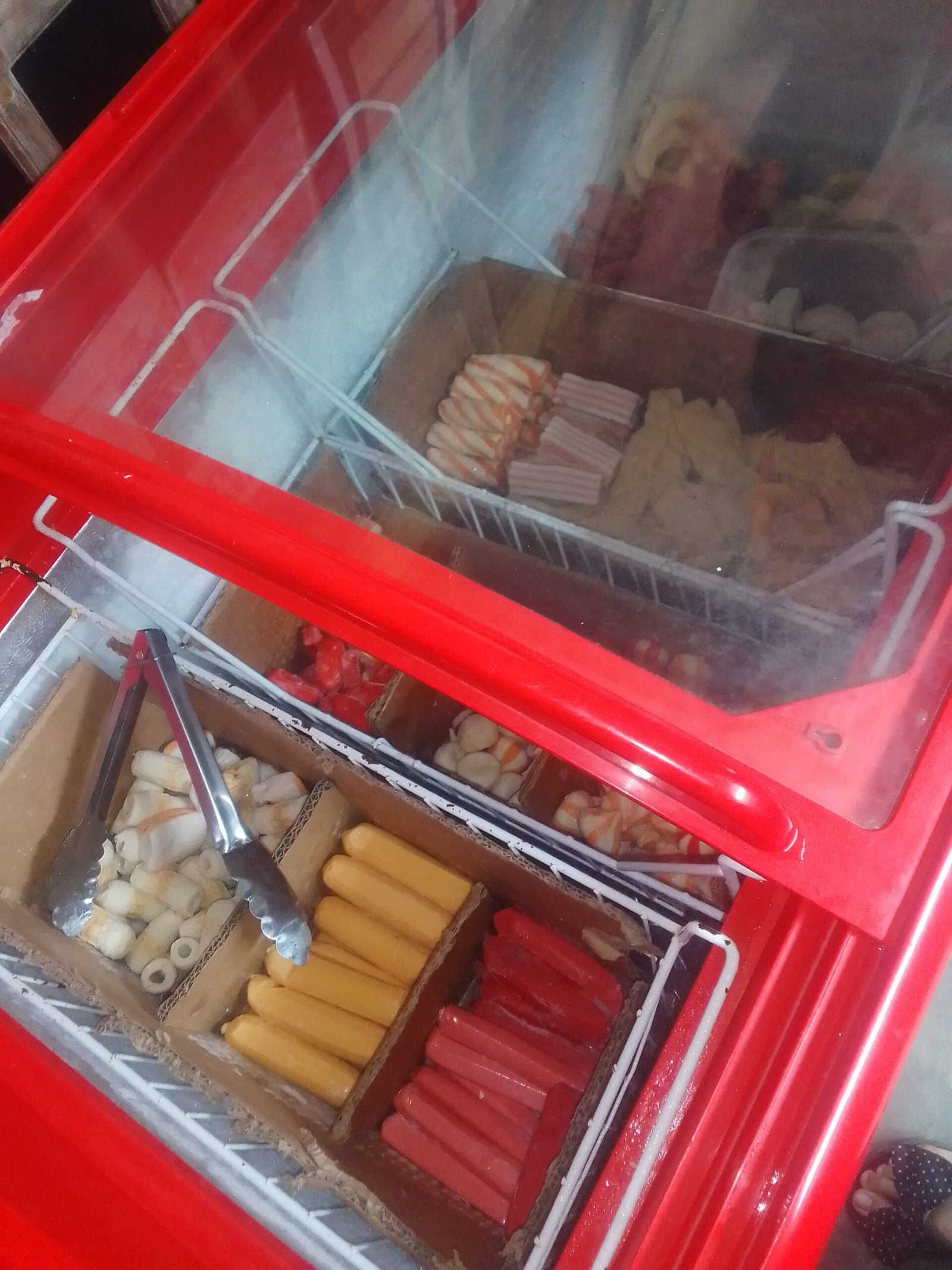 Bagi penggemar topping frozen food, kedai ini menyediakan berbagai pilihan seperti dumpling, cikuwa, crabstick, sosis, dan masih banyak lagi. Semua topping frozen ini disimpan dalam freezer untuk menjaga kualitas dan kesegarannya, sehingga pelanggan tidak perlu khawatir akan bahan yang basi atau kurang segar.