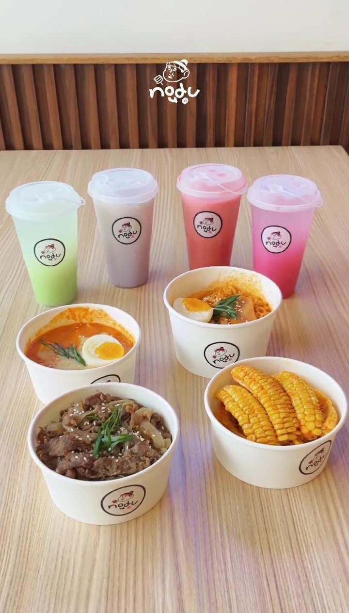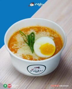 Siapa yang bisa menolak semangkuk ramyeon pedas yang mengepul panas? Di Nodu Korean Snackbar, ramyeon disajikan dengan kuah kaya rasa, ditambah topping seperti telur, sosis, dan daun bawang.