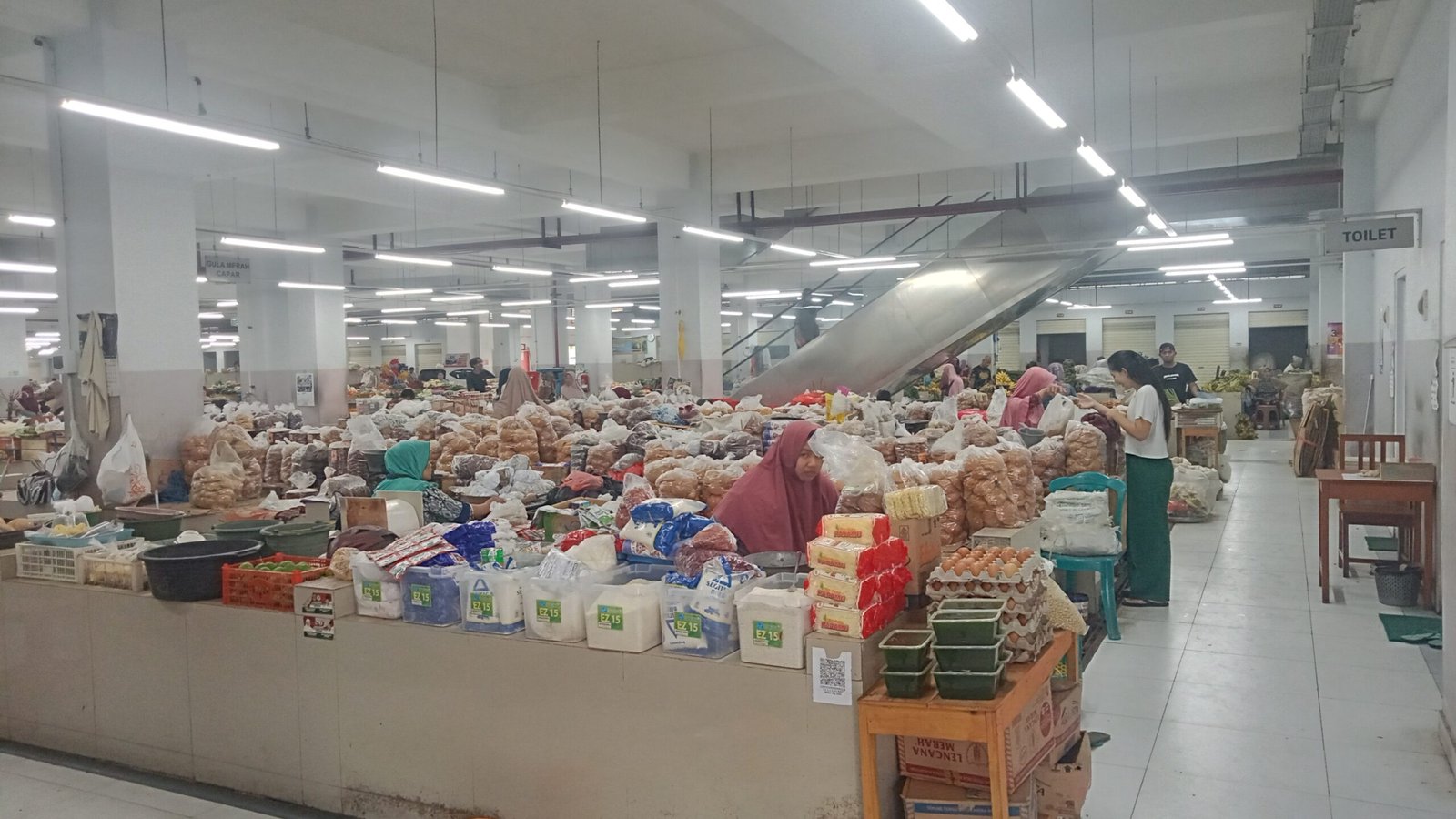 Harga sembako mulai dari beras, gula, minyak, daging, telur, ayam, hingga cabai tidak ada perubahan.