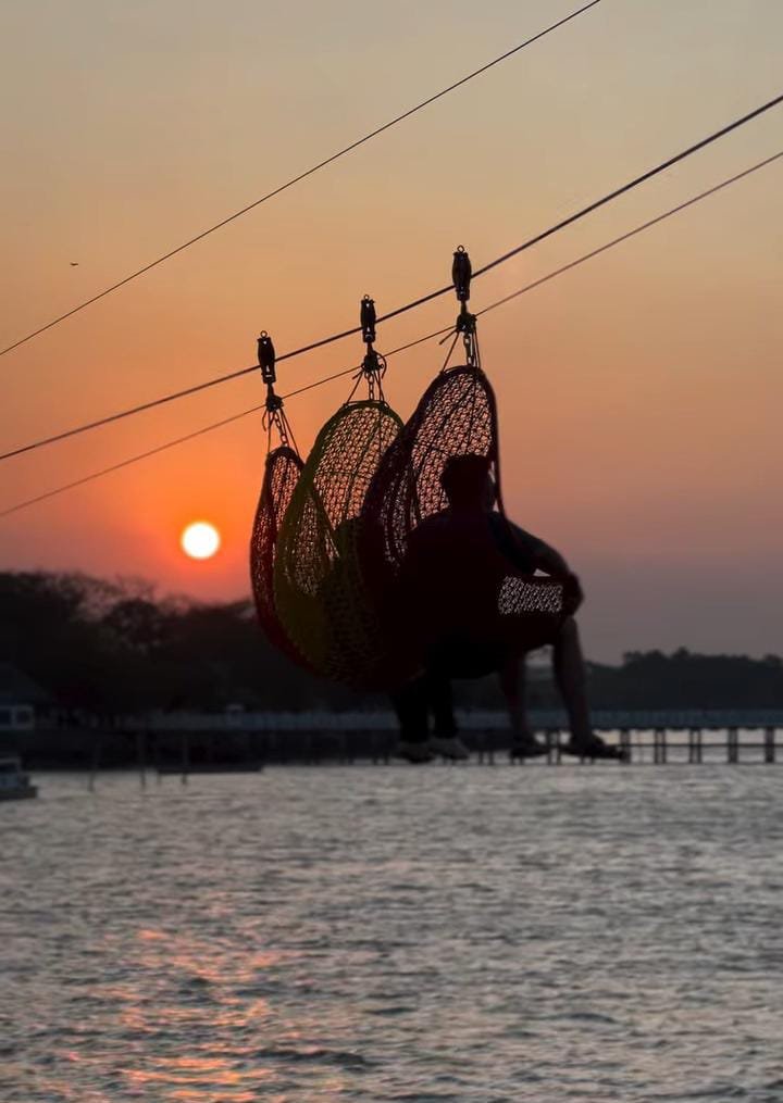 Terdapat area kolam renang & playground, cocok untuk anak-anak yang ingin bermain air dengan aman dan nyaman. Keranjang sultan & flying fox juga jadi wahana yang menantang adrenalin dengan meluncur dari ketinggian di atas dermaga pantai.