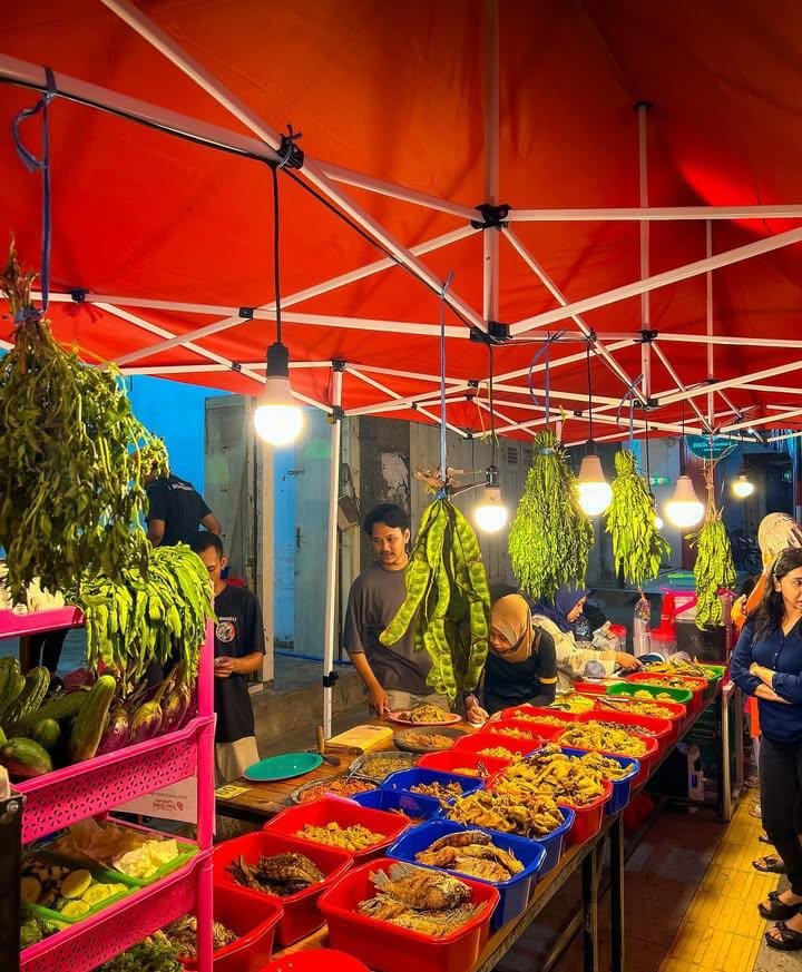 Begitu sampai di tempat ini, pengunjung akan disambut dengan deretan lauk yang tersaji rapi dan menggoda. Pilihan lauk di sini benar-benar melimpah, mulai dari menu penyetan klasik seperti ayam goreng, bebek goreng, lele, nila, gurame, serta aneka ikan laut lainnya.