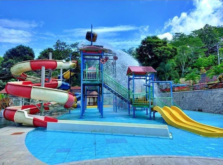 Tak hanya itu, kolam renang di sini juga dilengkapi dengan berbagai permainan air yang seru, mulai dari seluncuran tinggi hingga pancuran air yang menyenangkan bagi anak-anak.