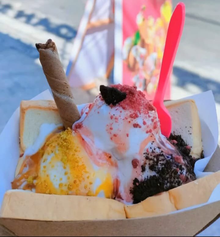 Rasa es krim bisa disesuaikan selera, dan tidak berhenti di situ, karena setiap pembelian otomatis sudah termasuk gratis satu topping pilihan, sebuah nilai lebih yang bikin hati senang. Untuk saus siramnya, tersedia pilihan favorit seperti caramel legit, cokelat klasik, hingga stroberi yang segar.