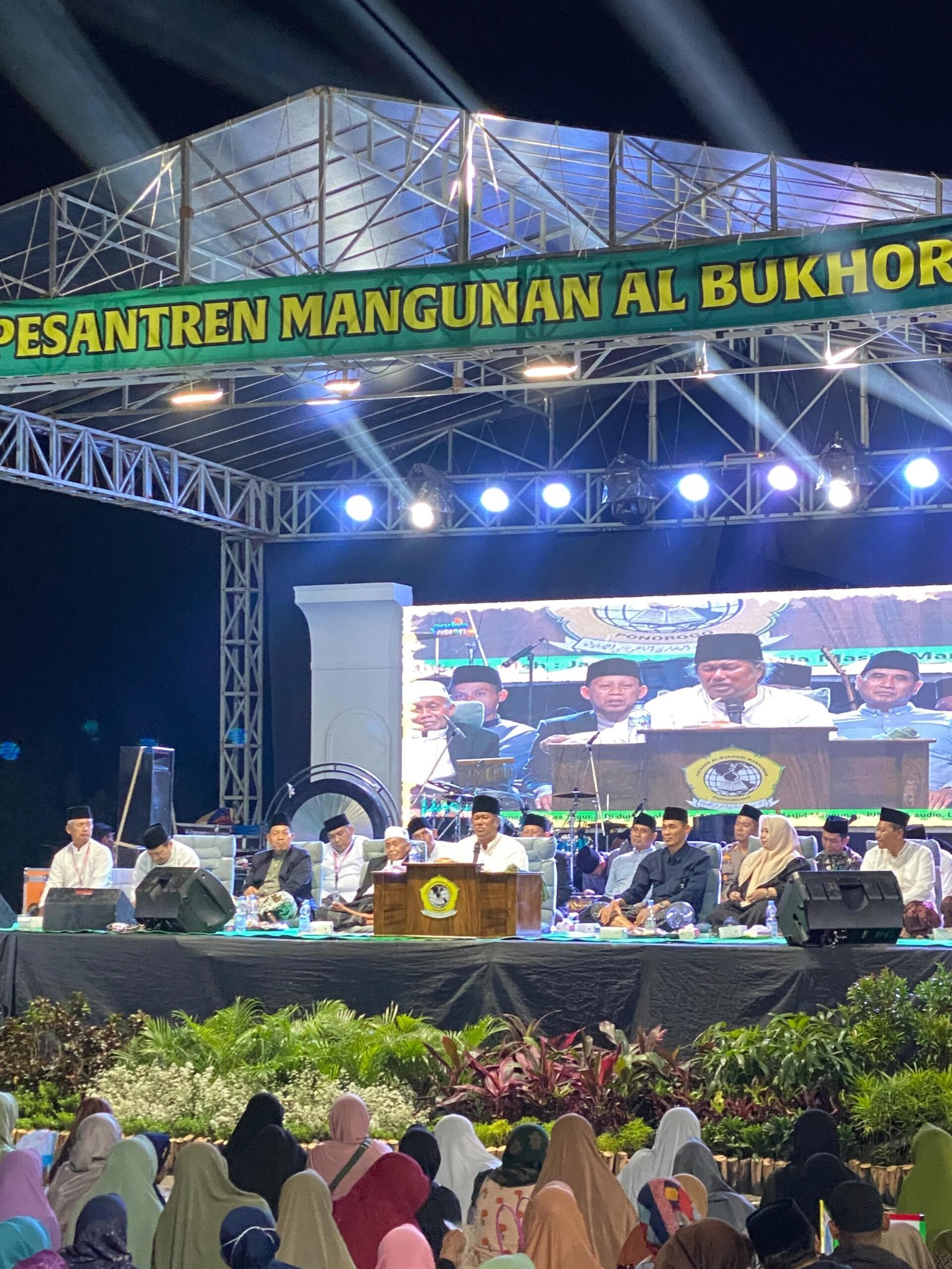Turut hadir dalam kesempatan ini, K.H. Imam Muslim pengasuh Pondok Al Bukhori Mangunan, Drs. Ibnu Multazam pembina Yayasan Al Bukhori Mangunan, Imam Asrori, S.Pd ketua Yayasan Al Bukhori Mangunan, Bunda Lisdyarita, S.H wakil Bupati Ponorogo, Drs. Dwi Agus Prayitno, S.H., M.Si ketua DPRD kabupaten Ponorogo, Dr. Idam Mustofa, M.Pd.I, ketua PCNU kabupaten Ponorogo, serta ketua MUI kabupaten Ponorogo Prof. Dr. KH. Luthfi Hadi Aminuddin, M.Ag.