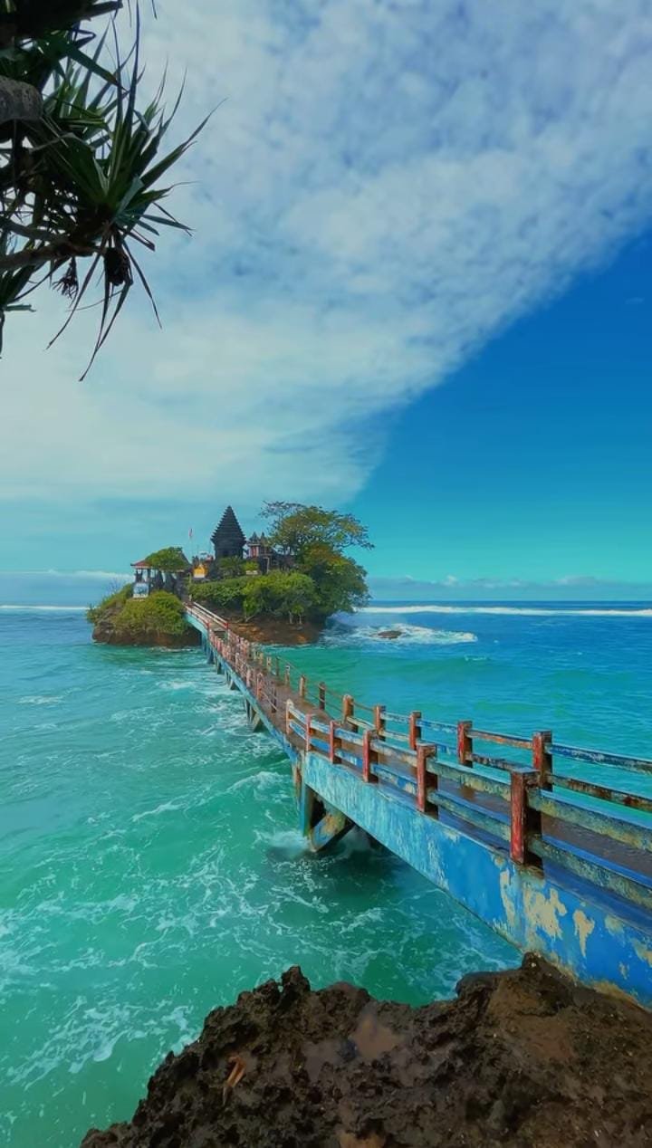 AswajaNews – Ada sebuah pantai di selatan Jawa Timur, di mana lautan membentang luas dan sebuah pura berdiri anggun di atas batu karang, terhubung oleh jembatan yang tampak seolah menuntun langkah menuju langit.