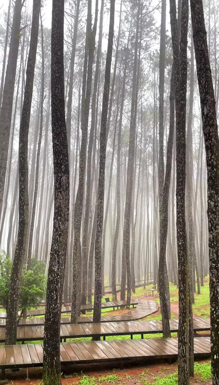 Begitu kaki menjejak tanahnya yang lembap, terlebih usai diguyur hujan, suasana syahdu langsung menyergap. Embusan angin lembut berpadu dengan aroma tanah basah dan resin dari batang-batang pinus yang menjulang tinggi, menciptakan atmosfer yang tak mudah dilupakan.