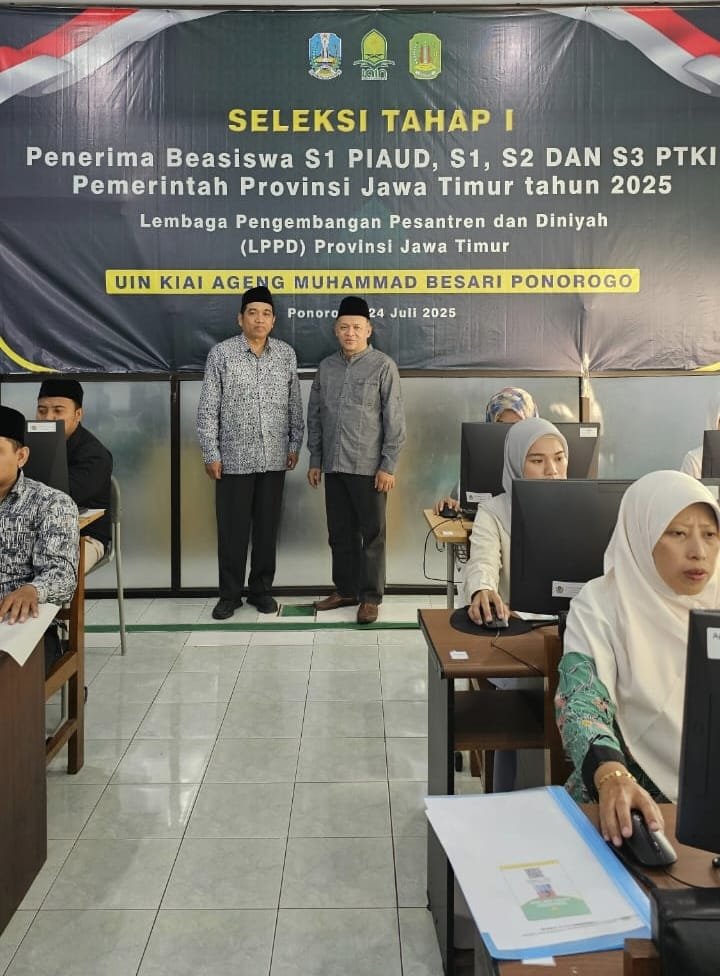 Aswaja News — Bertempat di Gedung Pascasarjana Kampus I UIN Kiai Ageng Muhammad Besari Ponorogo, Kamis (24/07/2025) Tim Pascasarjana Universitas Islam Negeri (UIN) Kiai Ageng Muhammad Besari Ponorogo menyelenggarakan seleksi tahap pertama Program Beasiswa Peningkatan Kualifikasi Akademik S-2 pada Program Studi Manajemen Pendidikan Islam (MPI).