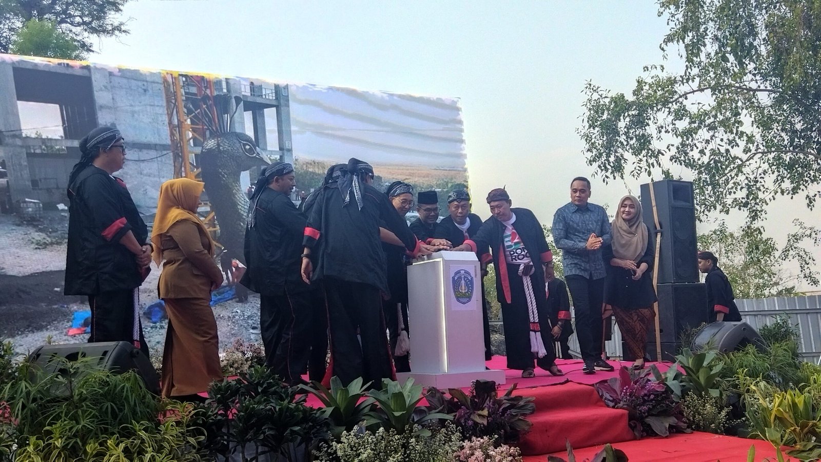 AswajaNews – Kepala merak seberat 3 ton resmi terpasang di puncak Monumen Reog dan Museum Peradaban (MRMP) setinggi 126 meter di Desa Sampung, Kecamatan Sampung, Kabupaten Ponorogo, Jawa Timur, Senin (11/8/2025). Pemasangan tersebut menandai selesainya pembangunan tahap pertama.