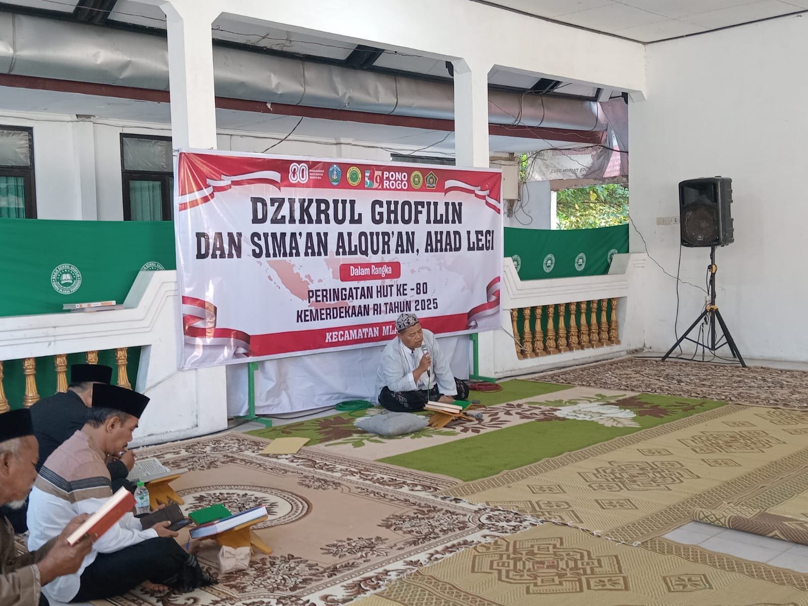 Setelah pada malam sebelumnya digelar Dzikrul Ghofilin yang dihadiri ribuan jamaah, pada Ahad (17/8/2025) pagi hingga sore masyarakat kembali memenuhi Pendopo Kecamatan Mlarak untuk mengikuti Simaan Al-Qur’an rutin Ahad Legi yang diselenggarakan oleh Majelis Wakil Cabang Nahdlatul Ulama (MWC NU) Mlarak.