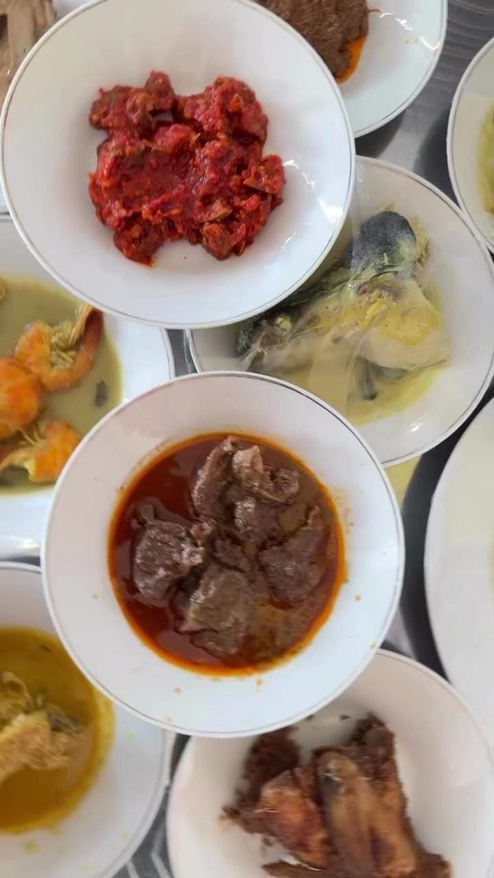 Dengan harga lauk mulai dari Rp10 ribuan, pengunjung bisa menikmati aneka pilihan menu yang beragam, mulai dari rendang legendaris, gulai ayam, kikil, otak, paru, babat, hingga hidangan laut seperti udang, cumi, dan kepala kakap. Tidak ketinggalan, kerupuk kulit siram yang renyah berpadu dengan kuah gulai gurih menjadi ciri khas yang wajib dicoba.