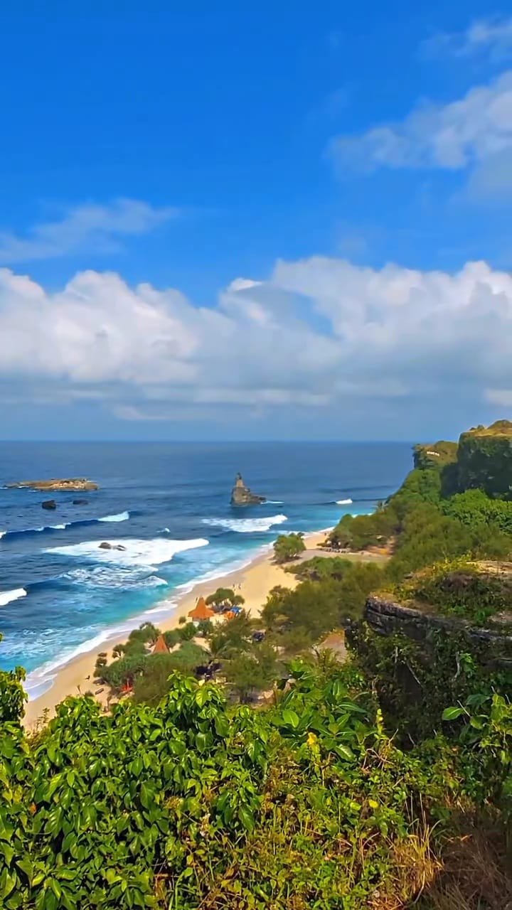 Keindahan alam pedesaan tersebut seolah menjadi pembuka menuju panorama pantai yang menanti di ujung perjalanan. Mendekati area parkir, birunya Samudera Hindia sudah tampak dari kejauhan, memberikan suntikan semangat setelah perjalanan panjang.