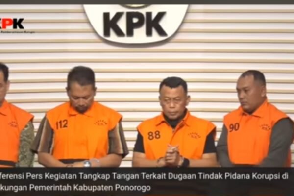 Aswajanews – Bupati Ponorogo, Sugiri Sancoko resmi ditetapkan Komisi Pemberantasan Korupsi (KPK) sebagai tersangka pasca terjaring Operasi Tangkap Tangan (OTT). Selain dia, KPK juga menetapkan tiga orang lainnya sebagai tersangka. Pelaksana Tugas Deputi Penindakan dan Eksekusi KPK Asep Guntur Rahayu mengatakan dalam konferensi pers bahwa seluruh tersangka adalah Bupati Ponorogo Sugiri Sancoko (SUG), Sekretaris Daerah…