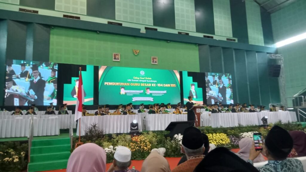 Pengukuhan sebagai Guru Besar bertempat di Gedung Syaifuddin Zuhri UINSA Surabaya Dengan menyampaikan Orasi “Arah Pengembangan keilmuan Pesantren” ini dihadiri oleh keluarga, kolega, serta jajaran pimpinan Pondok Pesantren Al Islam Joresan Ponorogo yang diwakili Wadir kesiswaan Ust. Sujono,S.PdI dan Kamad MA Ust. Imron Ahmadi,S.Ag. Hadir pula para guru dan sahabat seangkatan beliau, termasuk jajaran pengurus pusat IKAI (Ikatan Keluarga Alumni Al Islam) Dr Nurcholis,S.Ag, Ph.D yang memberikan dukungan dan doa terbaik dalam momen yang penuh kebanggaan ini.