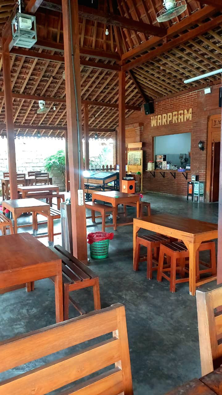 Warpram menempati bangunan dengan dekorasi estetik dan tertata rapi, menghadirkan perpaduan menarik antara unsur tradisional dan sentuhan modern. Meja kayu, pencahayaan hangat, hingga ornamen dekoratif yang Instagramable membuat suasana terasa begitu nyaman.
