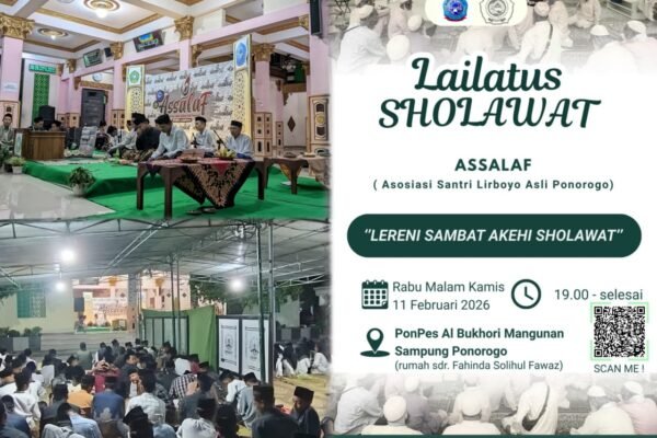 Aswajanews – Ponorogo – Suasana religius dan penuh khidmat menyelimuti Pondok Pesantren Al Bukhori Mangunan, Kecamatan Sampung, Ponorogo, saat Asosiasi Santri Lirboyo Asli Ponorogo (Assalaf) menggelar kegiatan Lailatus Sholawat, pada Rabu malam, (11/02/26). Acara ini dihadiri ratusan jamaah yang terdiri dari para santri, alumni yang tergabung Himasal, pimpinan pesantren Al Bukhori, tokoh masyarakat, serta warga…