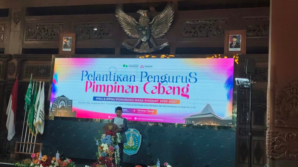 Aswajanews – Ponorogo, 25 April 2026 — Pimpinan Cabang Ikatan Pelajar Nahdlatul Ulama (PC IPNU) Kabupaten Ponorogo resmi dilantik dalam sebuah seremoni khidmat yang digelar di Pendopo Kabupaten Ponorogo, Sabtu (25/4/2026). Pelantikan ini menjadi momentum penting dalam konsolidasi kader pelajar NU di tengah dinamika sosial dan tantangan generasi muda saat ini.